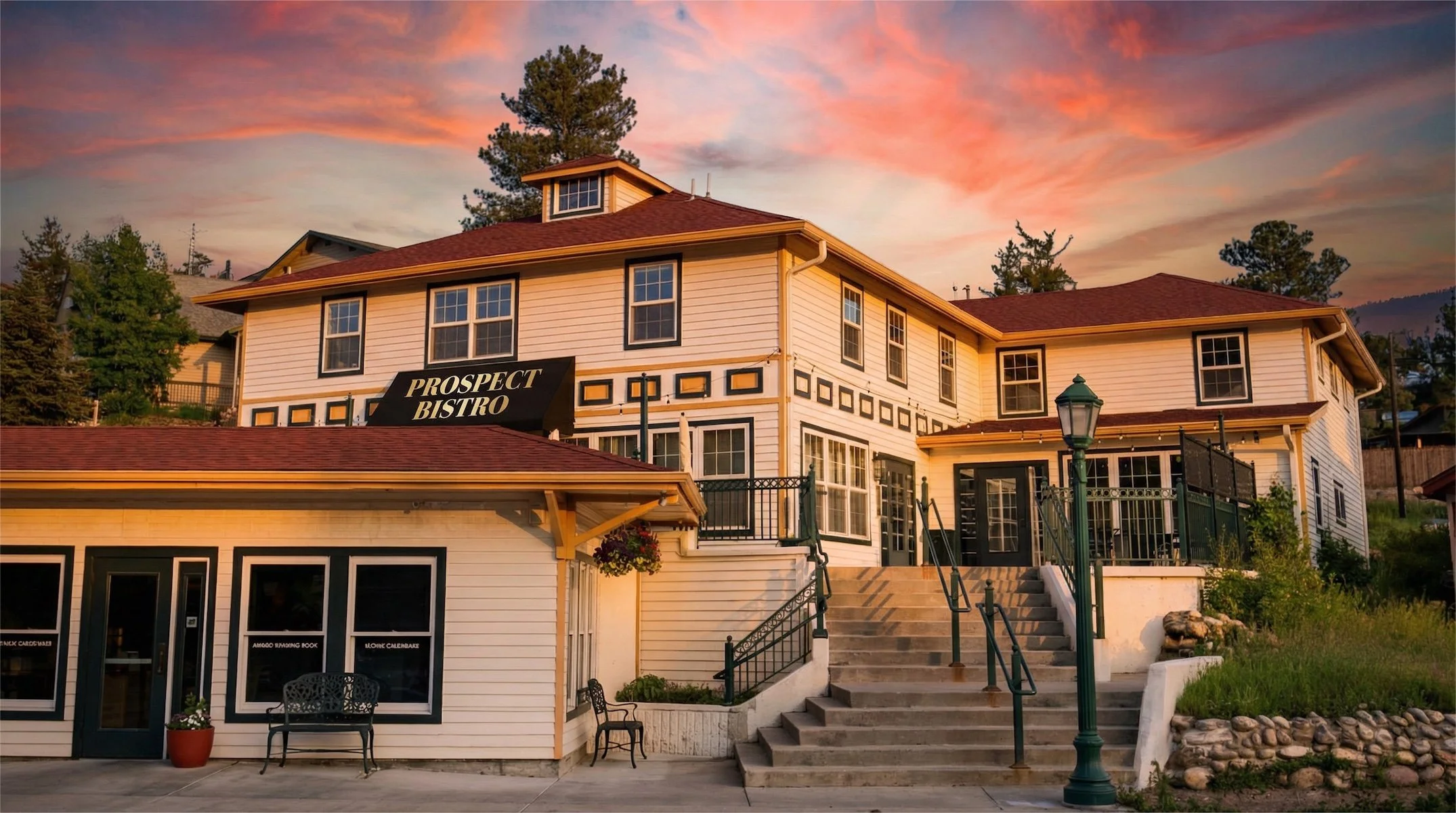 Fresh bistro classics, local game, and seasonal specialties inside the dining room of the historic Prospect Inn, featuring a timeless bar with whiskey, wine, and thoughtfully crafted cocktails — rooted in Rocky Mountain history. A must-visit in Estes Park for visitors and locals alike.